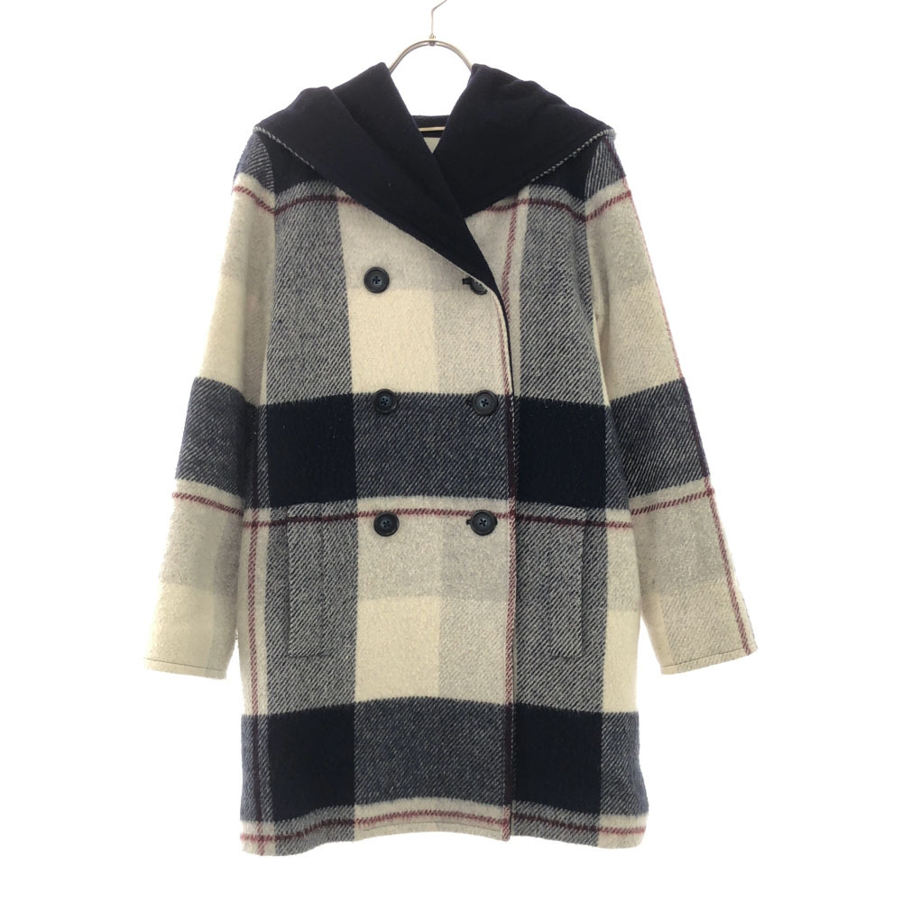 > ミラ オーウェン ウールブレンド チェック柄 フーデッド コート F ホワイト×ネイビー Mila Owen 09WFC145037 レディース