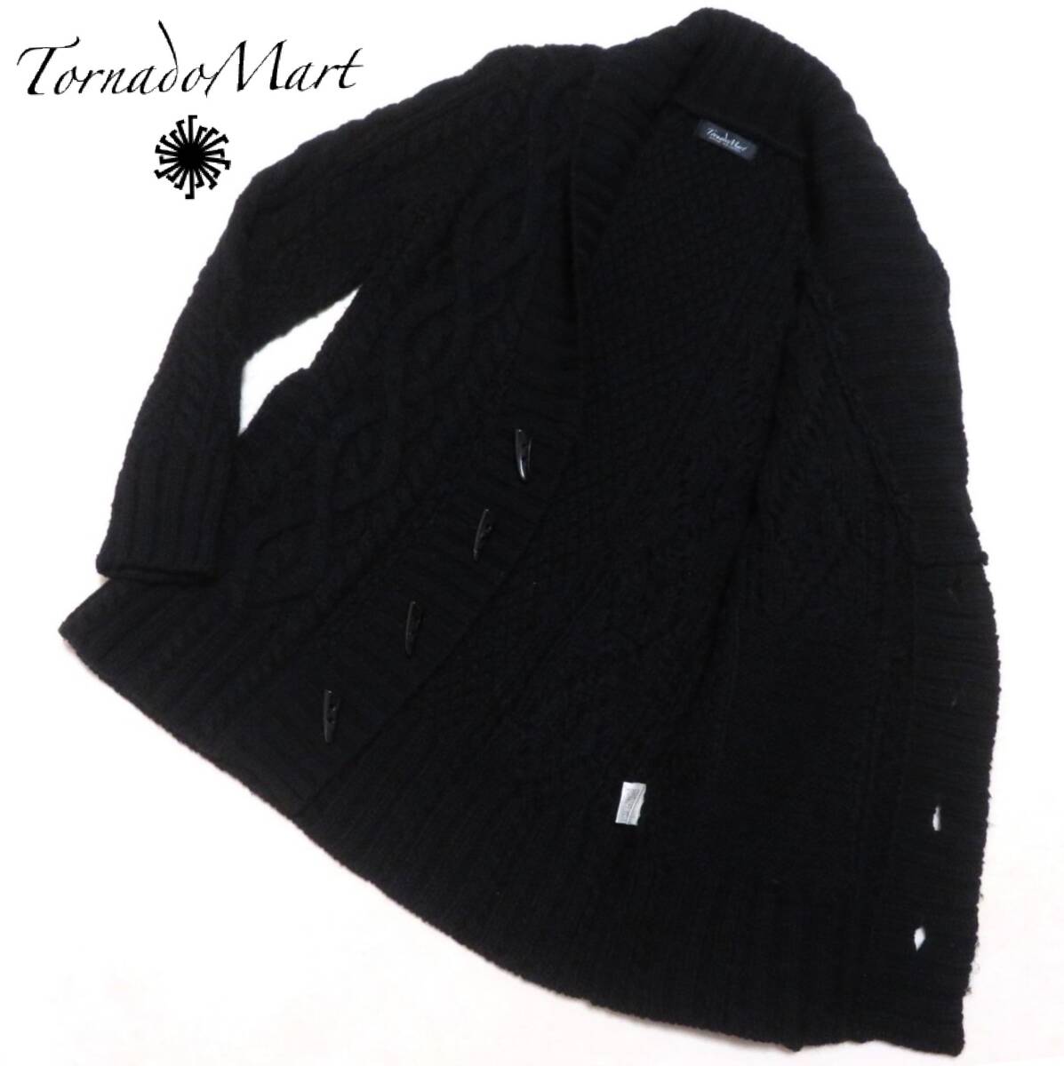 > TORNADOMART トルネードマート ショールカラーニットジャケット ケーブルニット カウチン セーター ヘビーカーディガン メンズ 黒 秋冬物