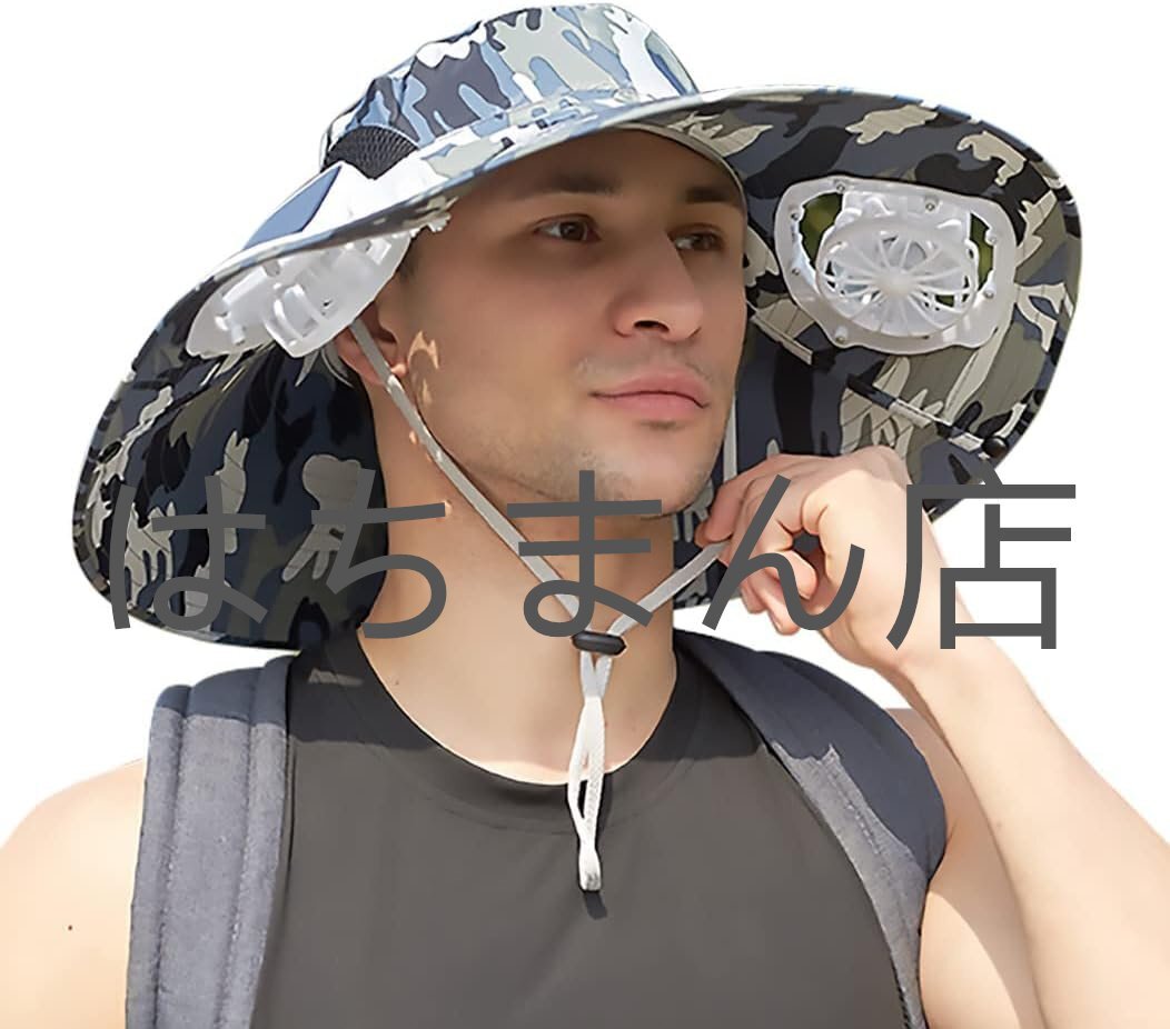 - 扇風機付き帽子 2ファン付き帽子 ソーラー+USB充電 日よけ帽子 ワイドブリムバケット帽子 アンチUV 釣りに最適-迷彩-シルバー+グレー