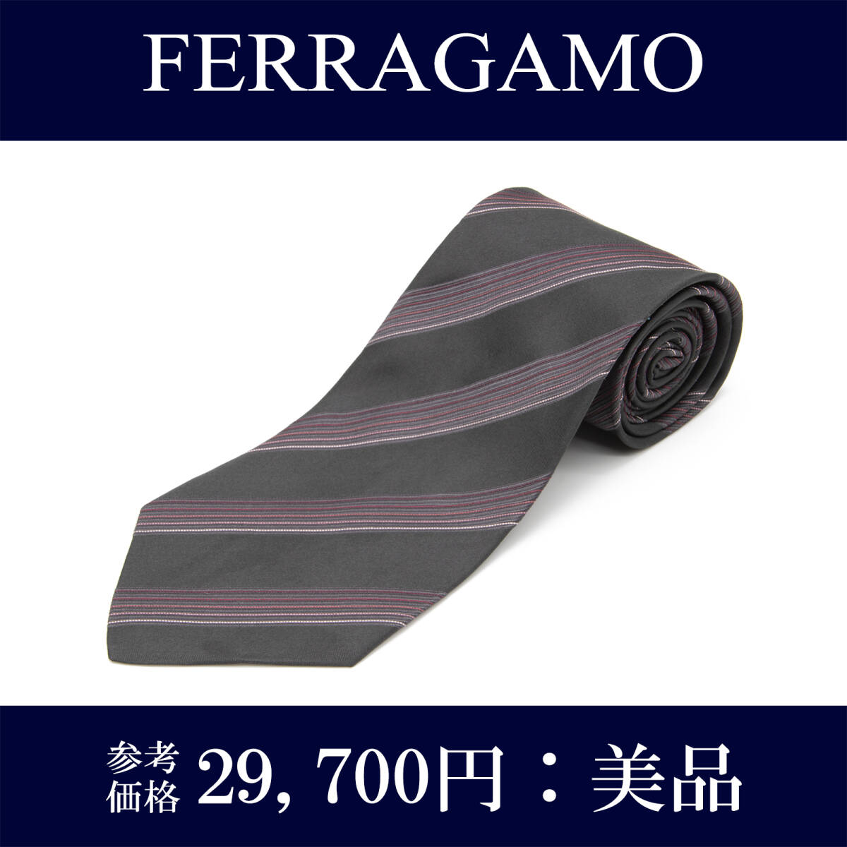 > 送料無料 フェラガモ ネクタイ ジャガードタイ シルク グレー 紫色 パープル ビジネス ブランド ストライプ シンプル レア 綺麗 N403