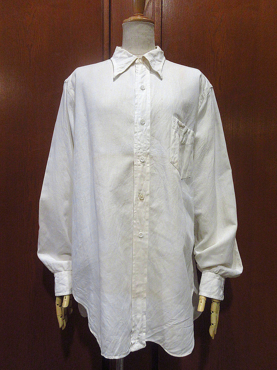 > ビンテージ30's40's●Steuart Parkコットンドレスシャツ白●241204i1-m-lssh-drsワイシャツ長袖無地