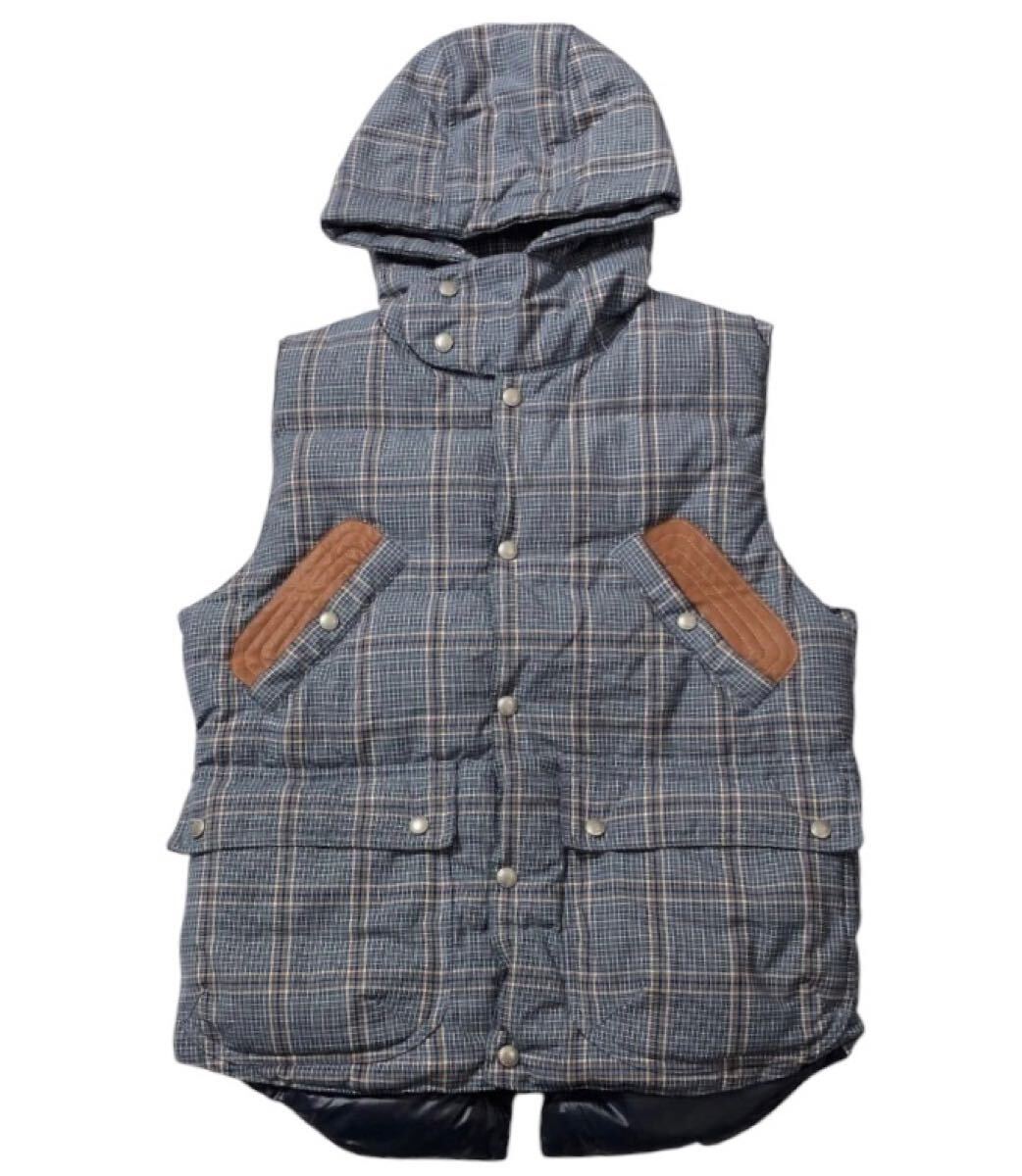 > ■ JUNYAWATANABE MAN COMME des GARCONS ジュンヤワタナベマン コムデギャルソン ■ 牛革 レザー切替 チェック柄 ダウン ベスト L