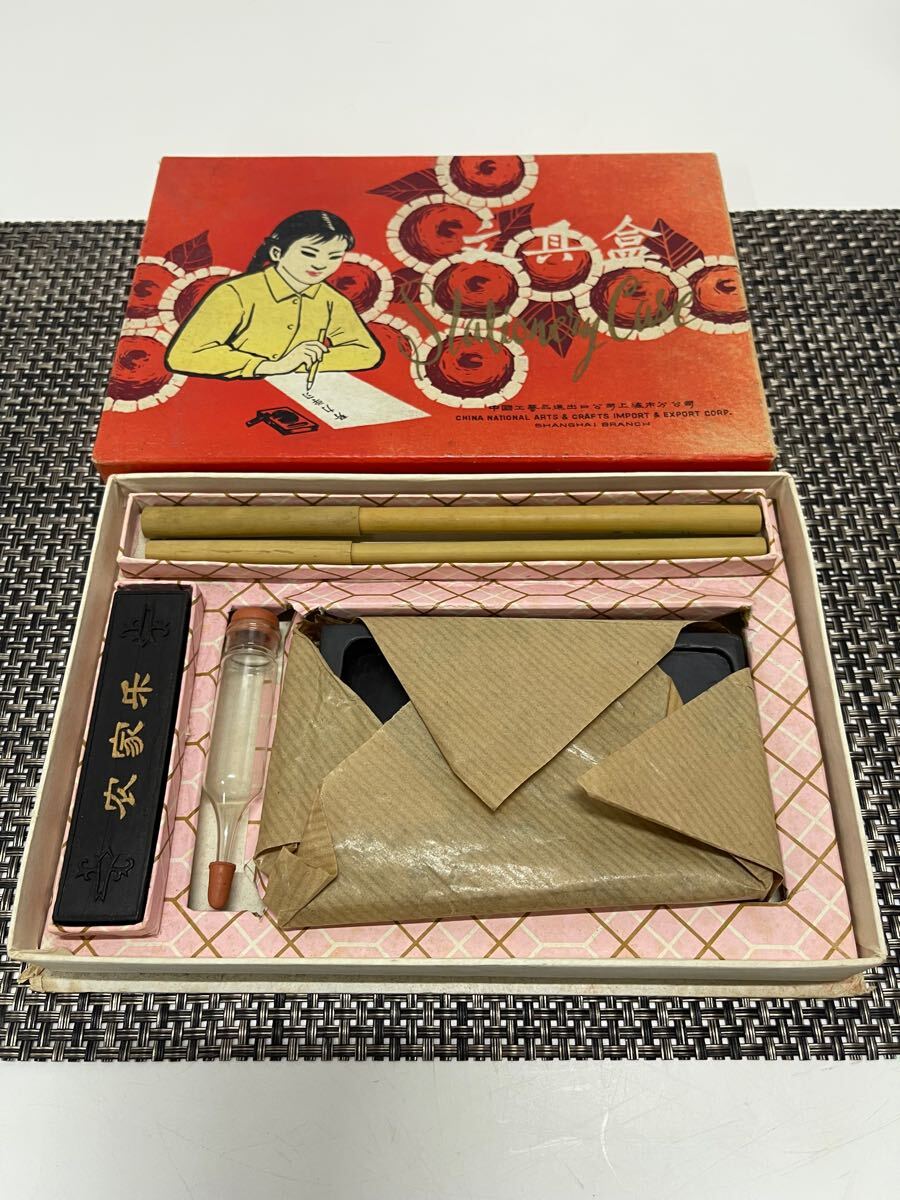 - 珍品◇中国の書道セット 時代もの 墨/硯/筆/スポイト 管T-130