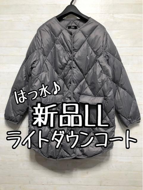 > 新品☆LL♪グレー系♪ライトダウンコート♪ノーカラーコート♪〇B521