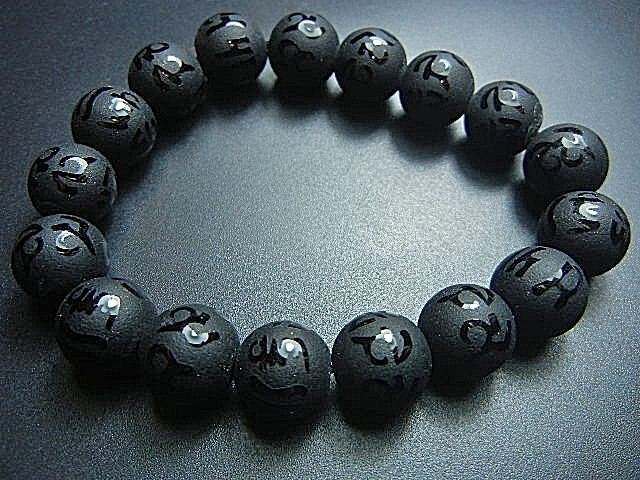 - ★西蔵天珠数珠★JFV3224 黒オニキス 12mm梵文彫り 超勧め