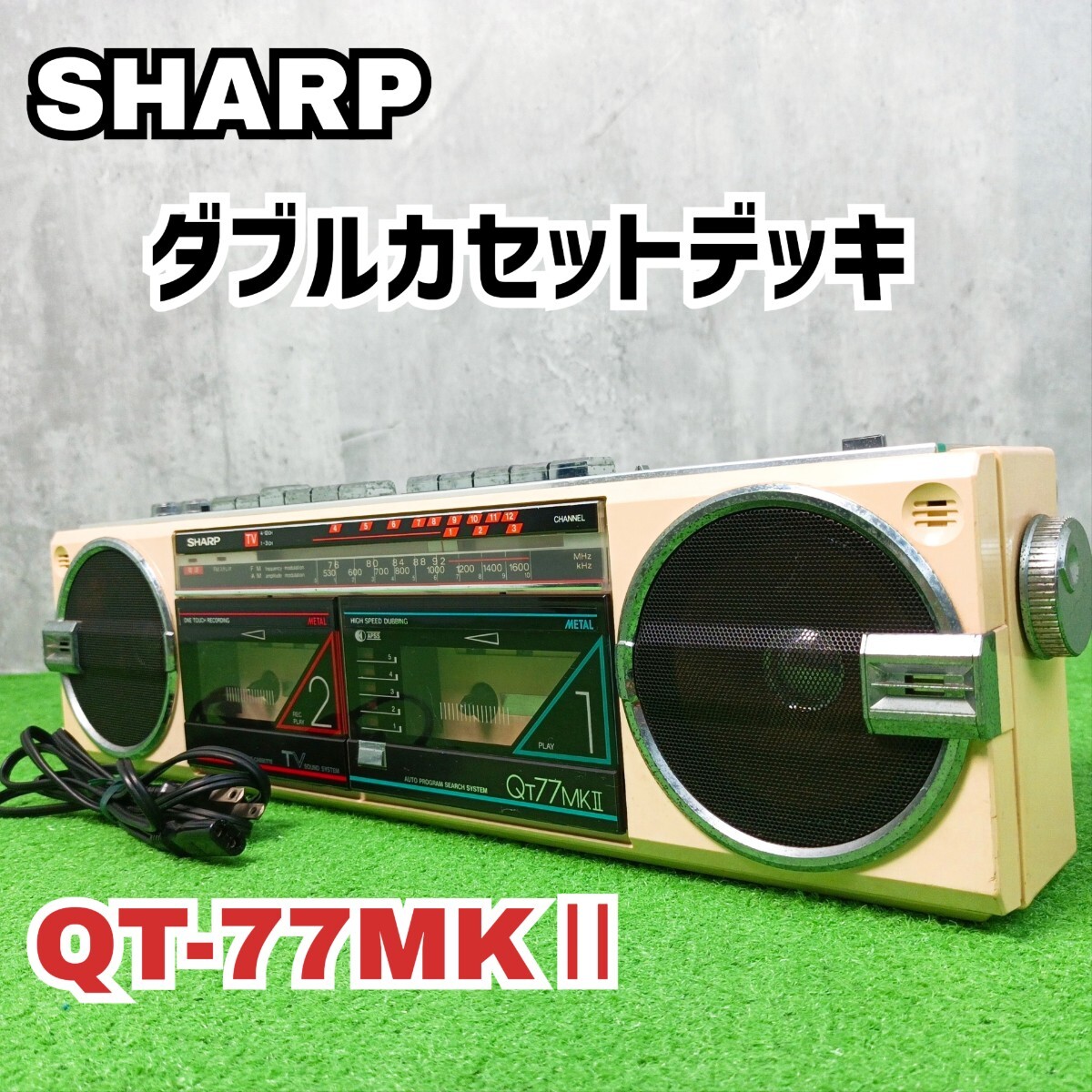 > ジャンク 通電OK シャープ ダブルカセットデッキ ラジカセ QT-77MKⅡ ホワイト 昭和レトロ アンティーク Y24120502