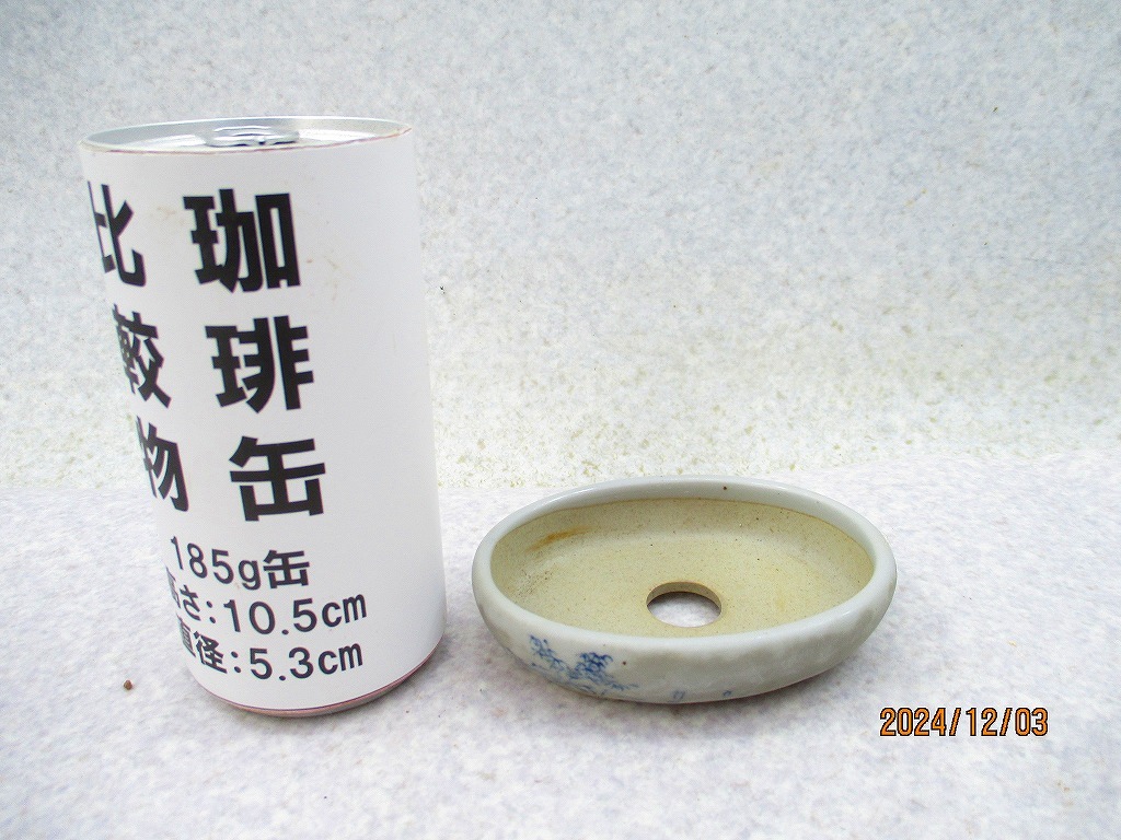 - [緑の市場] 小品盆栽鉢 在銘 絵入白釉楕円鉢 (12224)定形外郵便送料無料/ゆうパック発送有料*選択可※無料発送はポスト投函