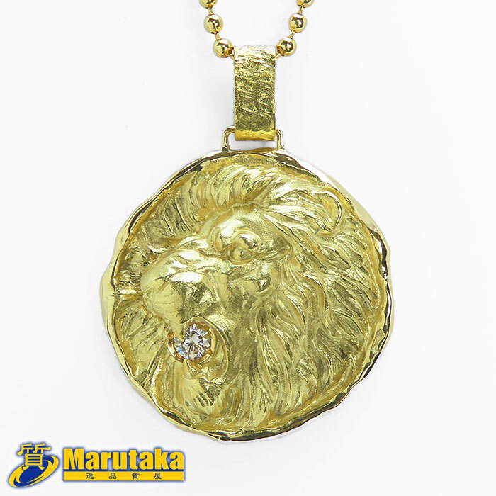 - 送料無料 K18 ライオン ネックレス ダイヤモンド LA Soma ボールチェーン ロング 18金 イエローゴールド 逸品質屋 丸高 24k358-3