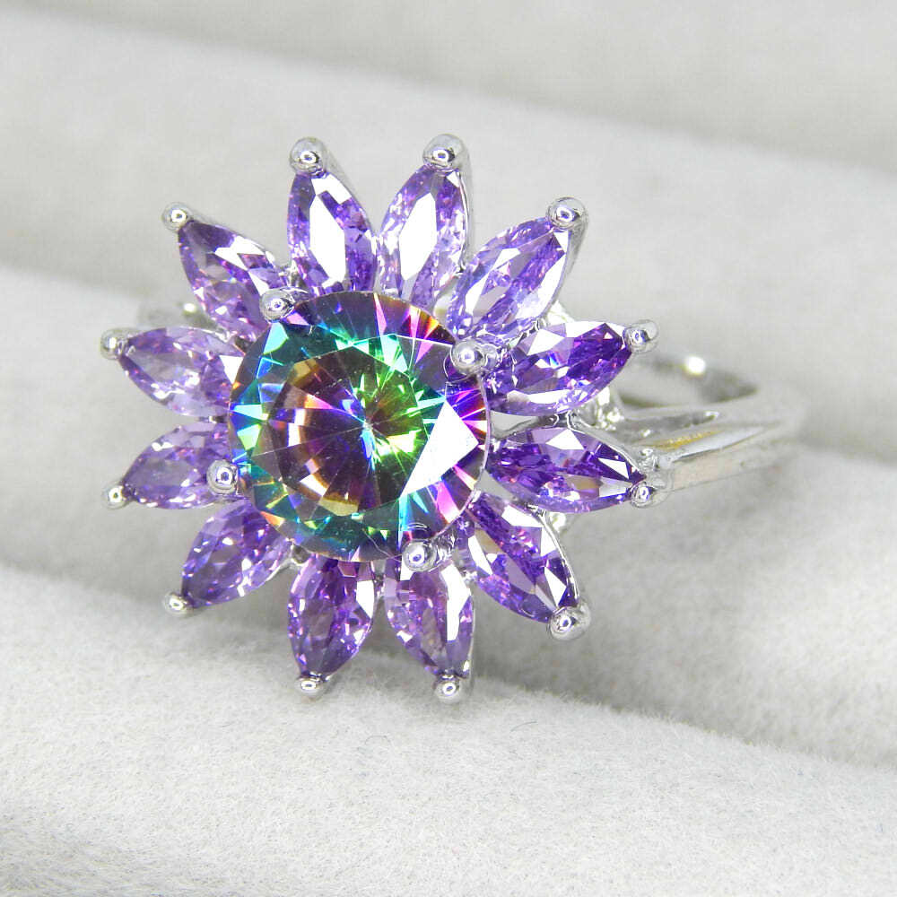 > 新品★送料無料 16号 アメジストジルコニア お花 リング レディースアクセサリー指輪 CZダイヤモンド カラーストーン ミスティックトパーズ