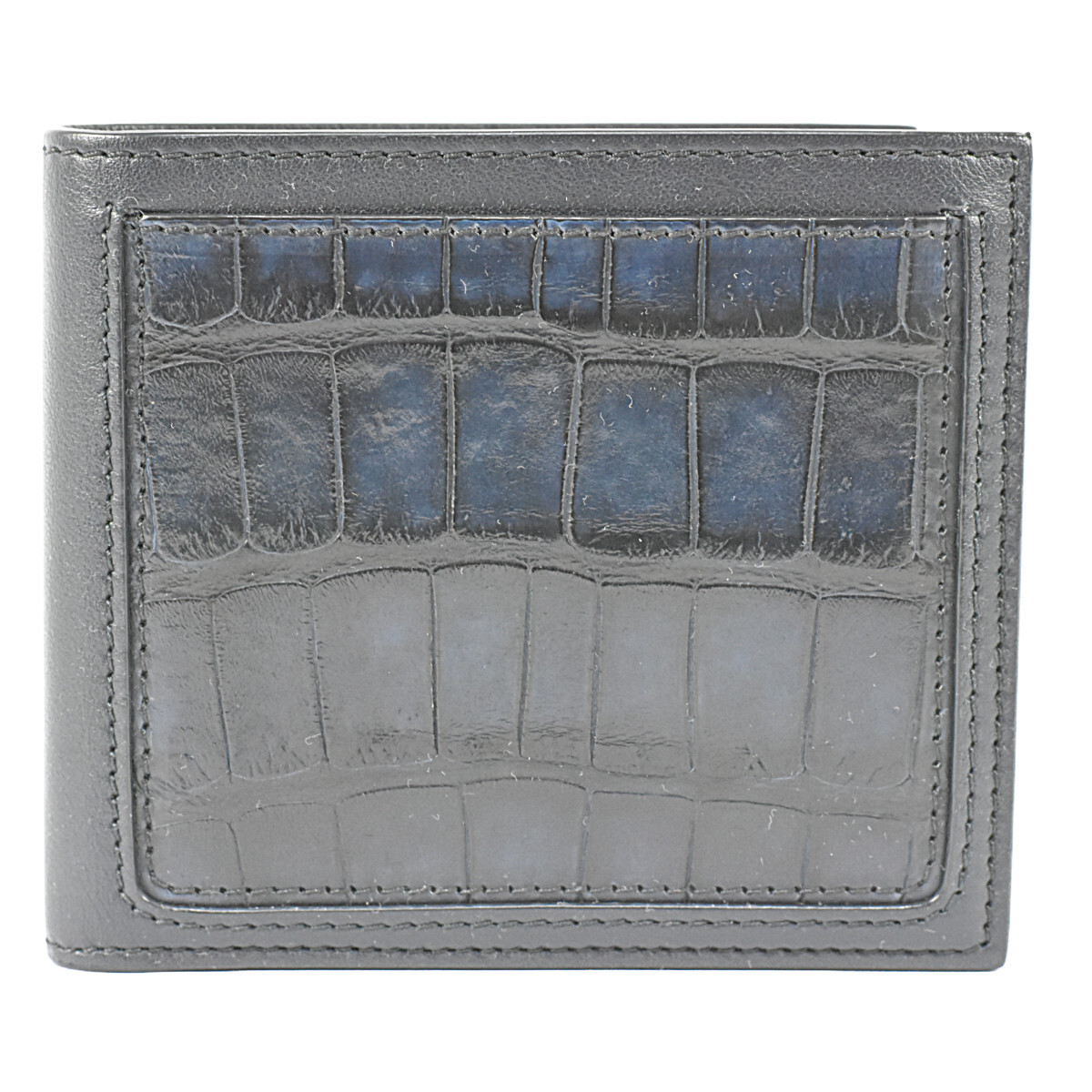 > エルメネジルドゼニア 超美品 クロコダイルエフェクト 二つ折りウォレット 財布 ネイビー Ermenegildo Zegna