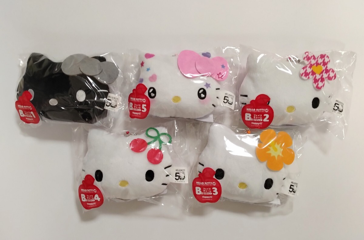 > HELLO KITTY 50th ハッピーアニバーサリー ハローキティ 50周年 Happyくじ B賞 フェイスチャーム ぬいぐるみ 全5種 コンプリートセット