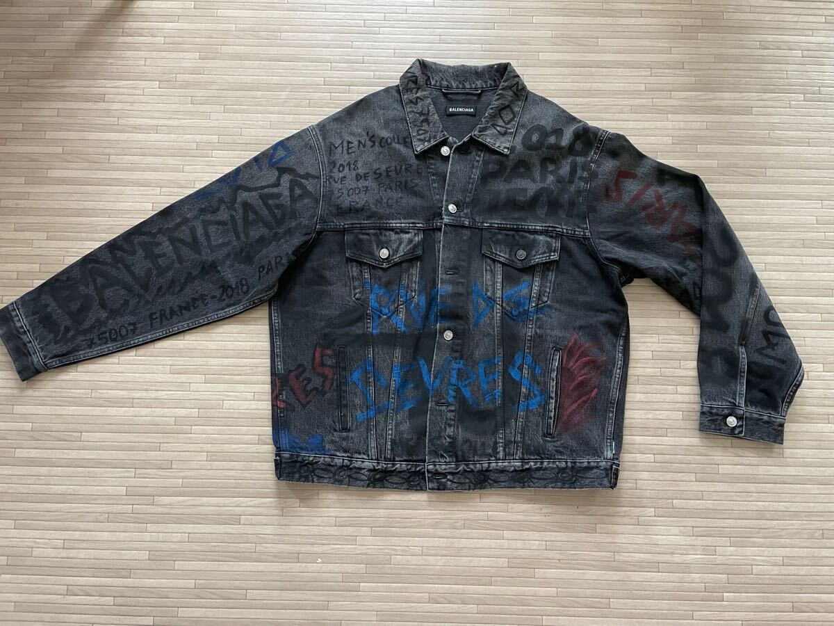 - バレンシアガ balenciaga 46 グラフィティデニムジャケット ブラック