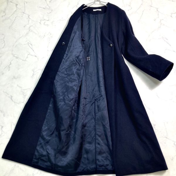 - デュクレ チェスターコート ロングコート ノーカラー ウール レディースM~L相当 ネイビー系 deux clefs