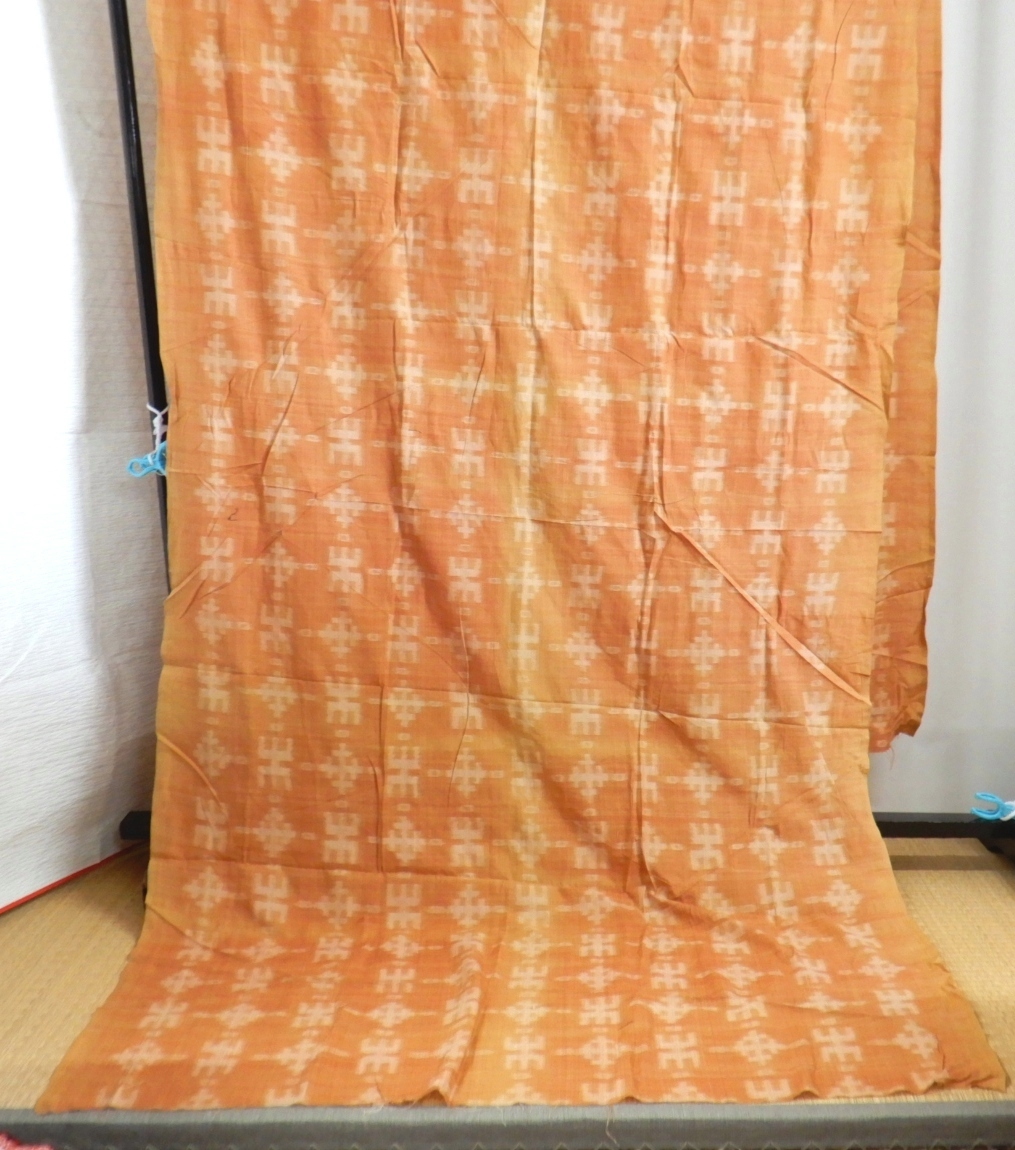 - <銀の斧>手織り草木染め木綿生地・横絣織・特注品・渋優しい橙色・約3.4m・やや薄めの生地・倉庫ヤケあり