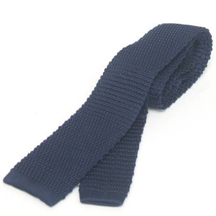 - ニットタイ ネクタイ 剣先6cm シルク100% 紺 ntt2