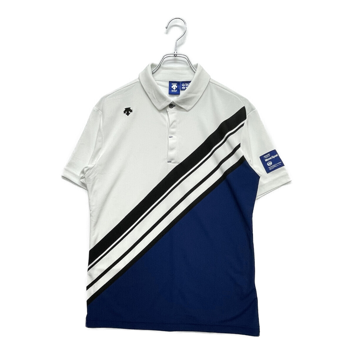 - coco 中古【値下げ】 デサントゴルフ DESCENTE GOLF メンズ 半袖ポロシャツ M 白×黒×青 ストライプ レターパックプラス発送可 90785