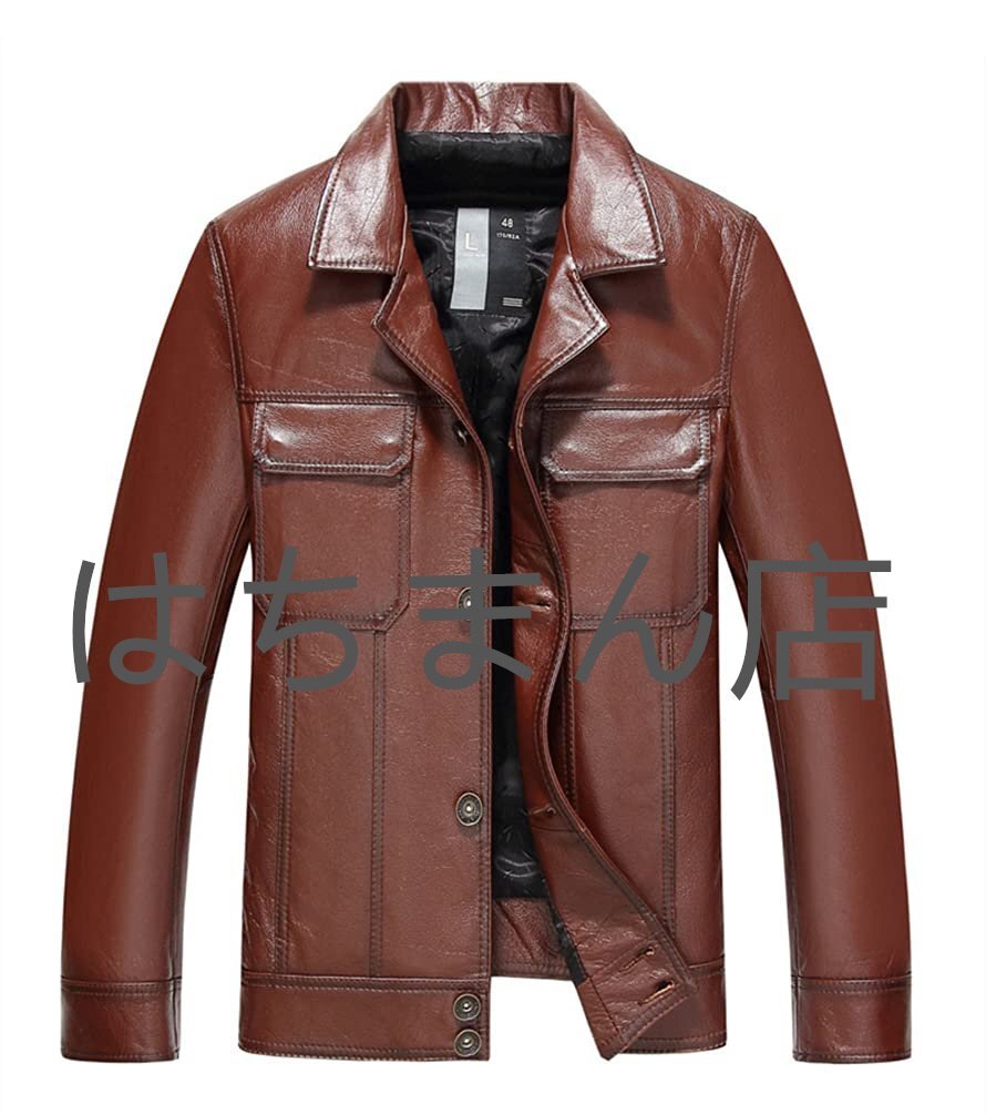 - ダウンジャケット 革ジャン レザージャケット メンズ ライダース 革ジャン 本革 バイク 牛革 カウレザー ショート 細身 ブラウン M-5XL