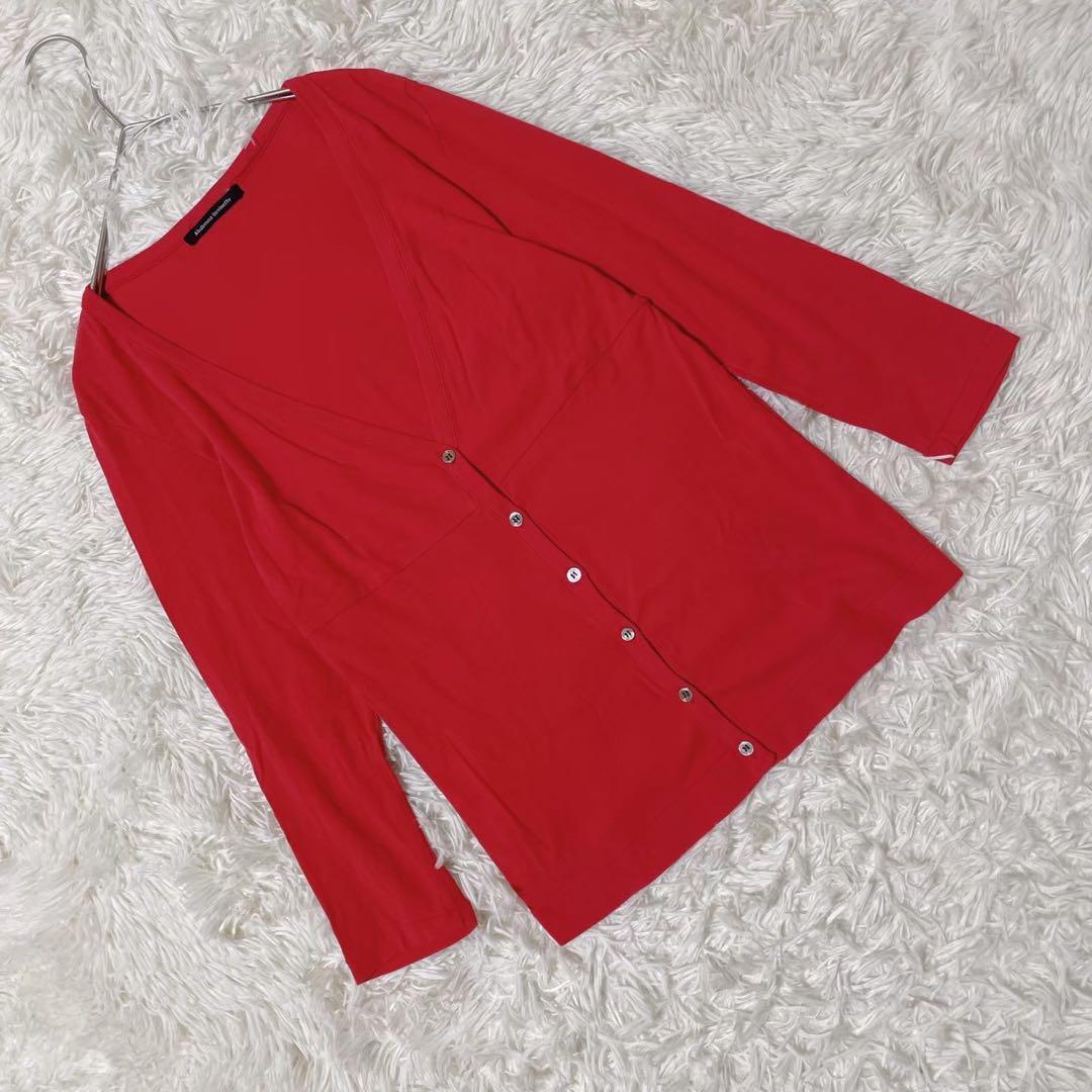 - 『アバハウスドュヴィネット』 Vネックカーディガン 7分袖 羽織 綿100% 赤