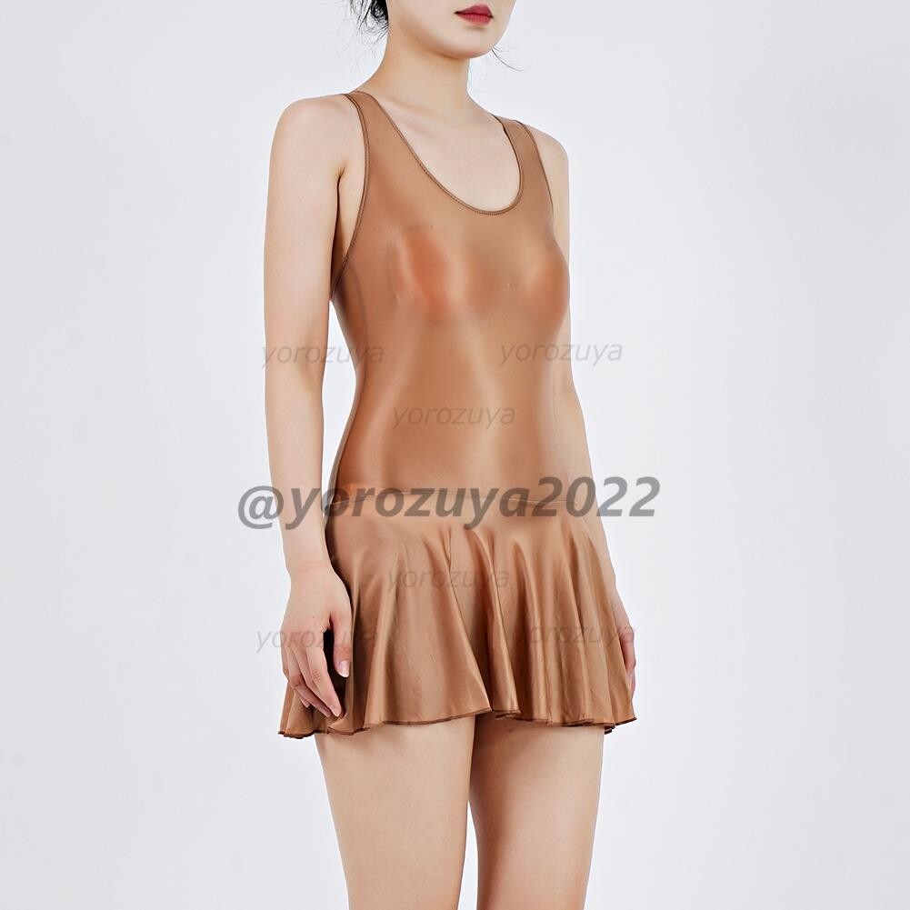 > 158-284-25 光沢 ツヤツヤ ピタピタ シルキー ドレス ワンピース【ブラウン,L】セクシー コスプレ エロ ランジェリー コスチューム .1