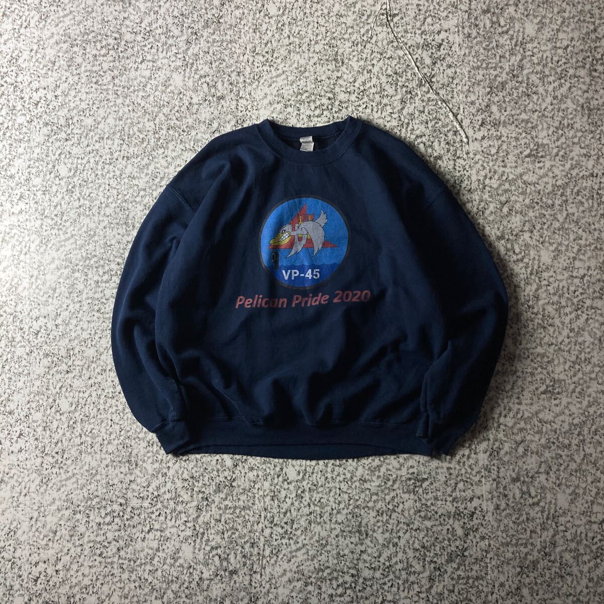 - 【グッドレギュラー】ペリカン キャラクタープリント スウェットシャツ 古着 ネイビー Lサイズ トレーナー US古着 ギルダン