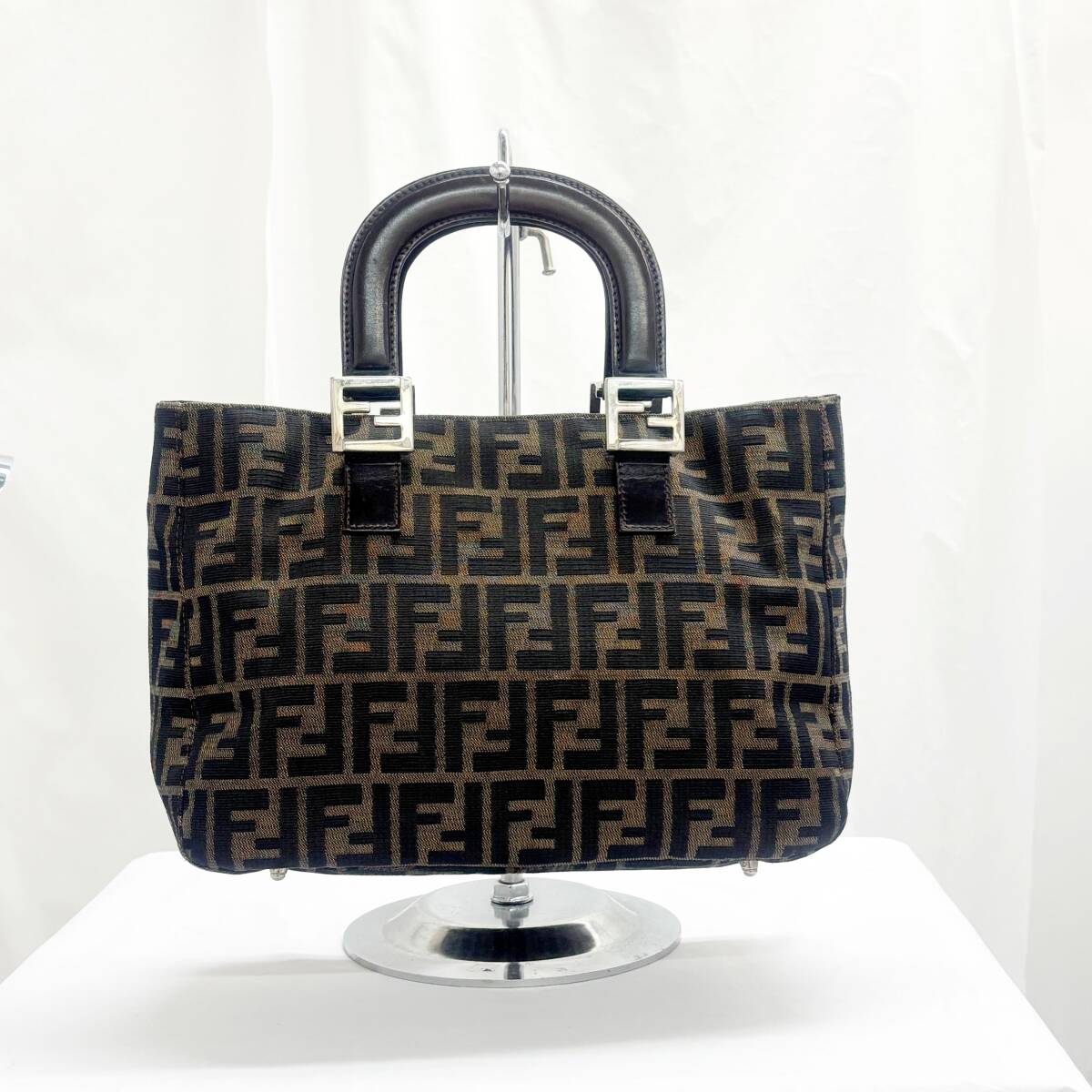 - 【中古】送料無料 フェンディ FENDI ズッカ ハンドバッグ 26329 茶 ブラウン キャンバス レザー ロゴ トートバッグ 148494