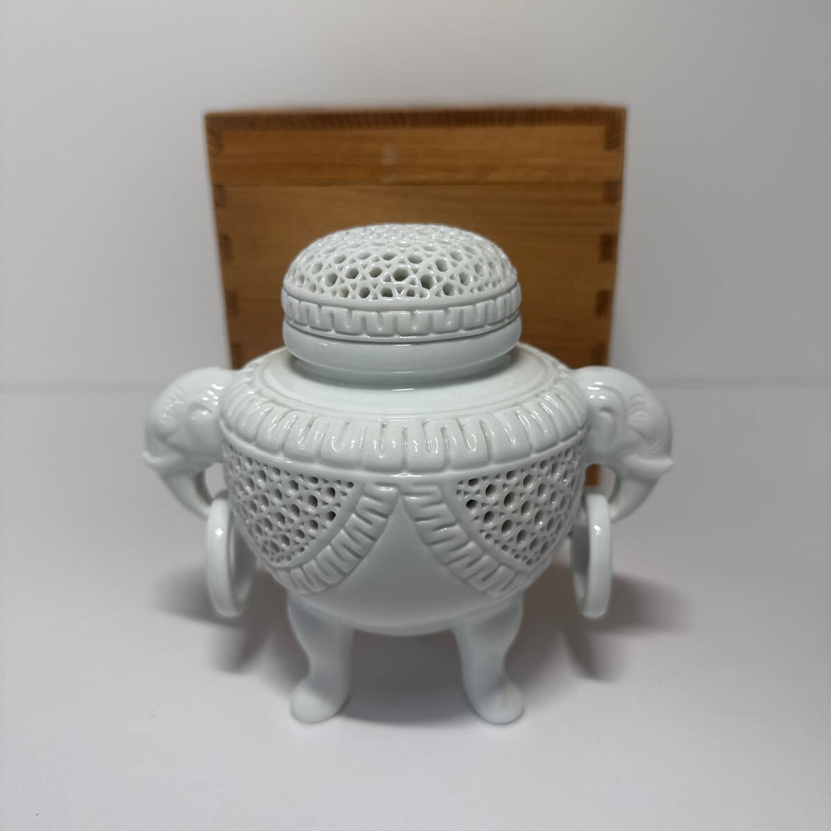 - 初出し品 有田焼 香炉 三足香炉 白磁 共箱 ★広島発送★