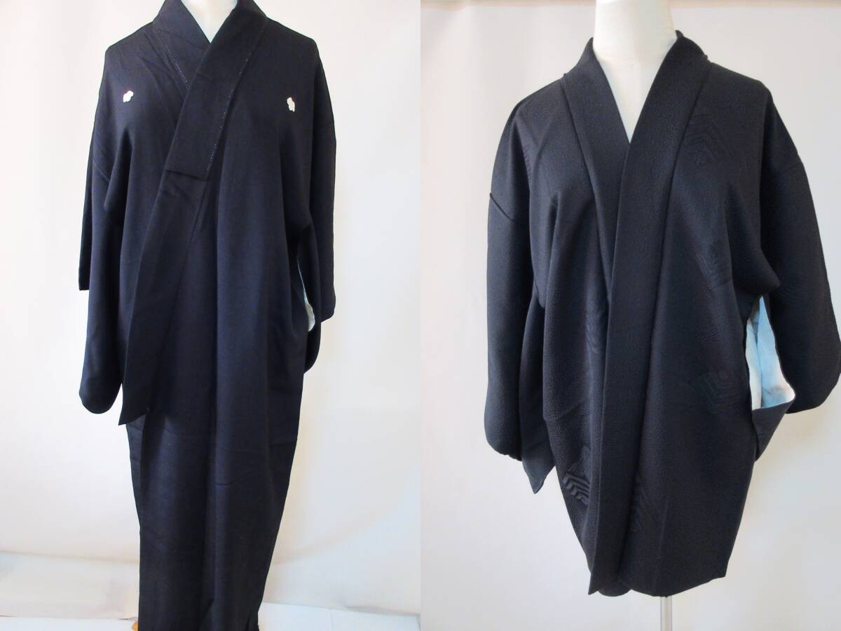 - 47-9 着物 喪服 羽織 セット 和装 黒 五つ紋 蔦 和服 身丈約140.5㎝ 仕立て上がり