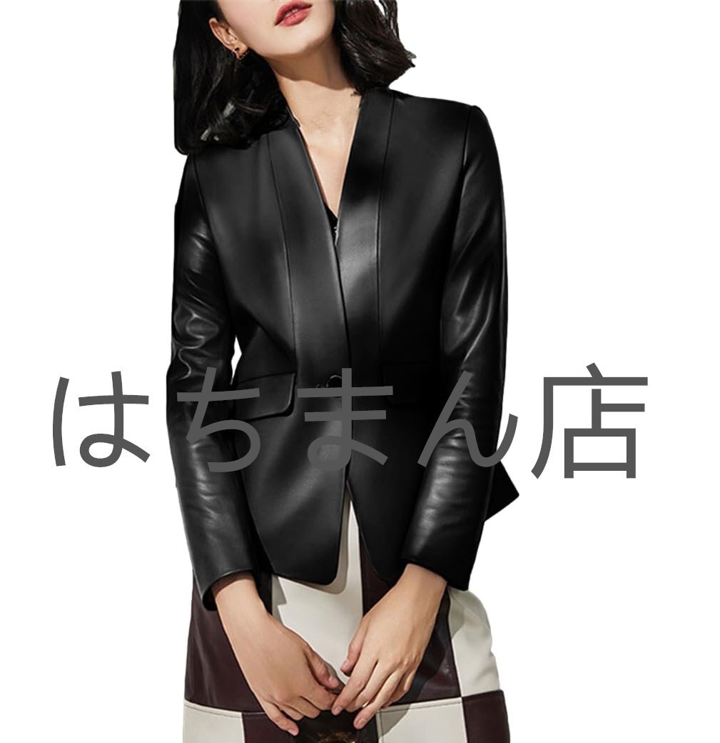 - ノーカラージャケット レディース 本革 本革ジャケット リアルレザー 革ジャン シンプル ライトアウター 秋冬 春秋 ブラック M-3XL