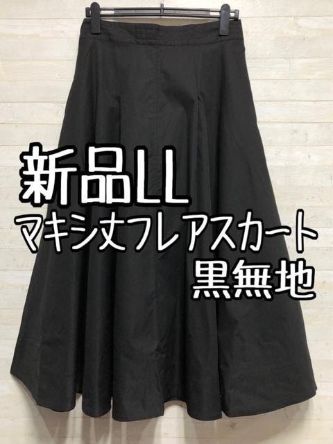- 新品☆LL黒系無地フレアおしゃれロングスカート〇B692