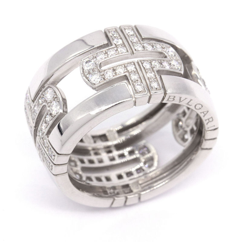 > ブルガリ パレンテシリング ダイヤモンド #54 13号 K18WG 新品仕上済 オープンワーク 幅広リング ホワイトゴールド 中古 送料無料