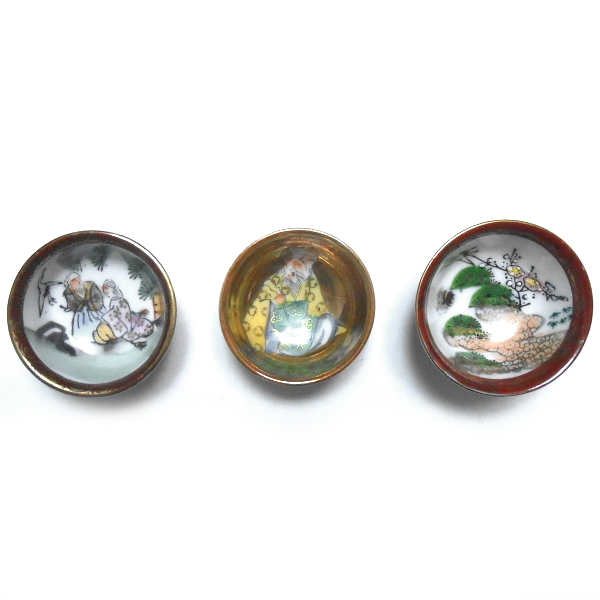 - 九谷焼等★盃 七福神文様 老人文様 松鶴梅文様 3種