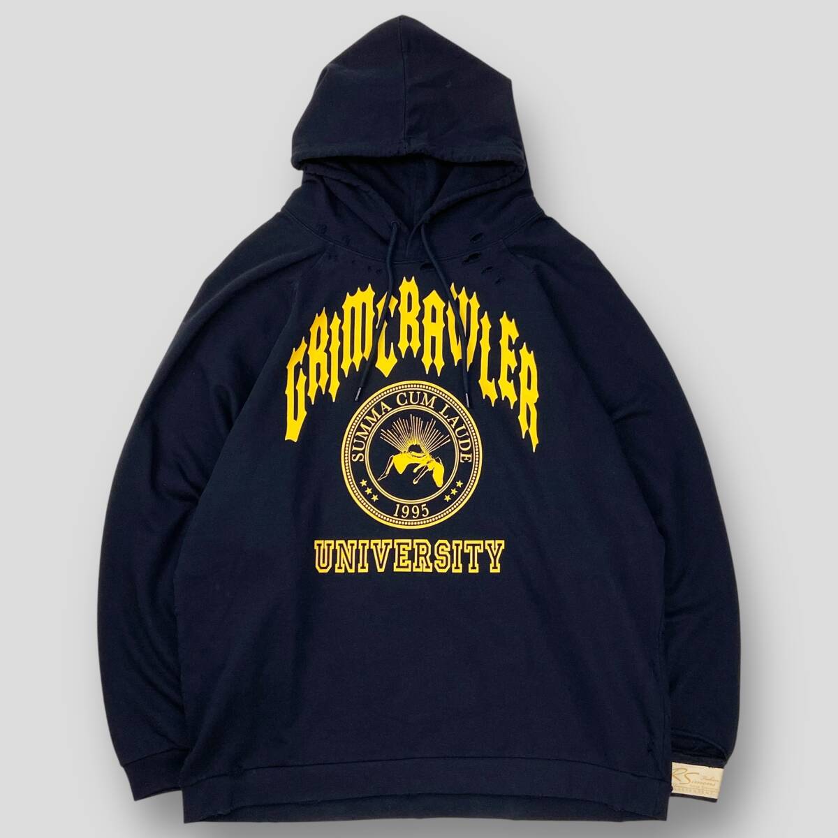 - 極美品 RAF SIMONS 22SS Destroyed Oversized Hoodie Grimcrawler University デストロイ フーディー カレッジ 221-M178 SSM4703 パーカー