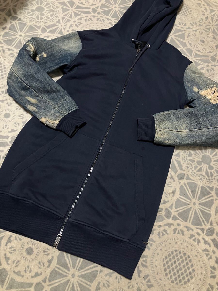 - DIESEL ディーゼル 袖デニム切り替え パーカー Sサイズ