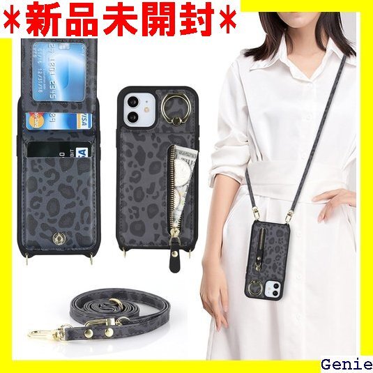 - iPhone 12 mini ケース ショルダー リン バー スマホケース 携帯カバー 豹柄 ヒョウ柄 ブラック 55