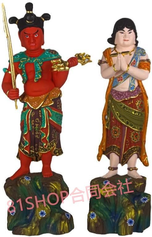 > 「81SHOP」仏像 制咤迦童子 矜羯羅童子 立像 桧木彩色 こんがら せいたか 不動明王脇侍 木彫仏像 木彫り 木製 (Size : 13.5cm)