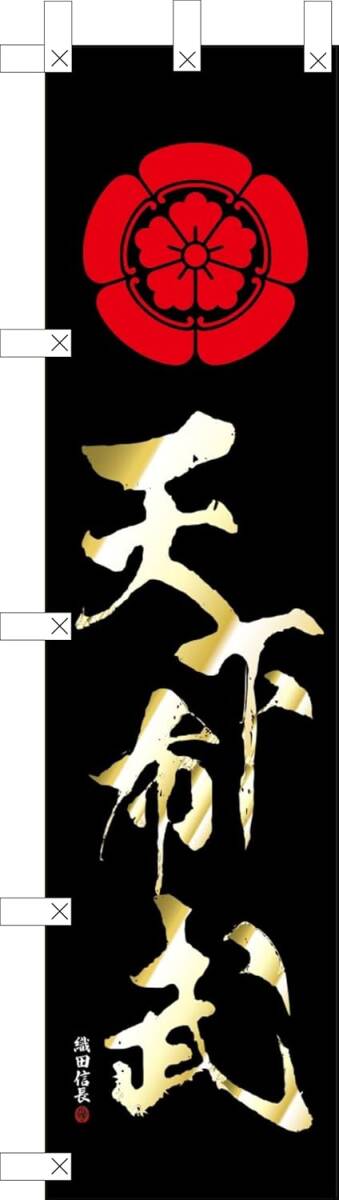 > のぼり旗「天下布武 のぼり 織田信長 幟旗 織田木瓜 家紋 合戦 戦国武将 のぼり 永楽通宝 軍旗 撫子紋 撫子蝶 黒金」何枚でも送料360円!