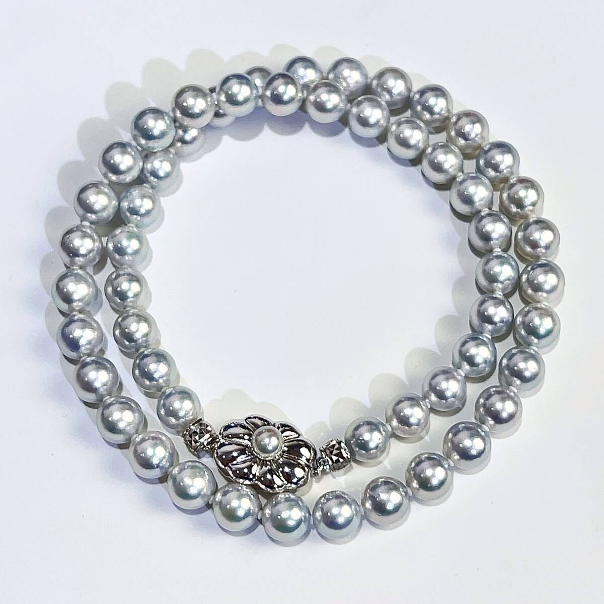 - SV AKOYA ナチュラル 無調色 アコヤパール ネックレス グレイ 天然 本真珠 鑑別書 46cm P7.5−8mm 41g レディース アクセサリー 未使用品
