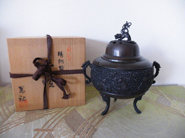 - 261.即決 香炉 獅子 在銘 箱 中古