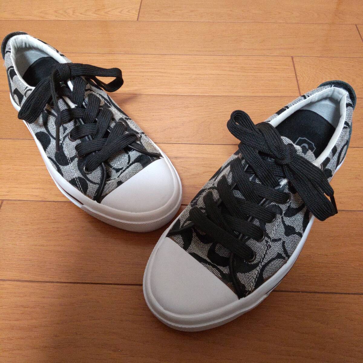 - 即決 コーチ COACH スニーカー ローカット 6B/22.5cm 中敷き交換済 ロゴ入りシグネチャース 黒