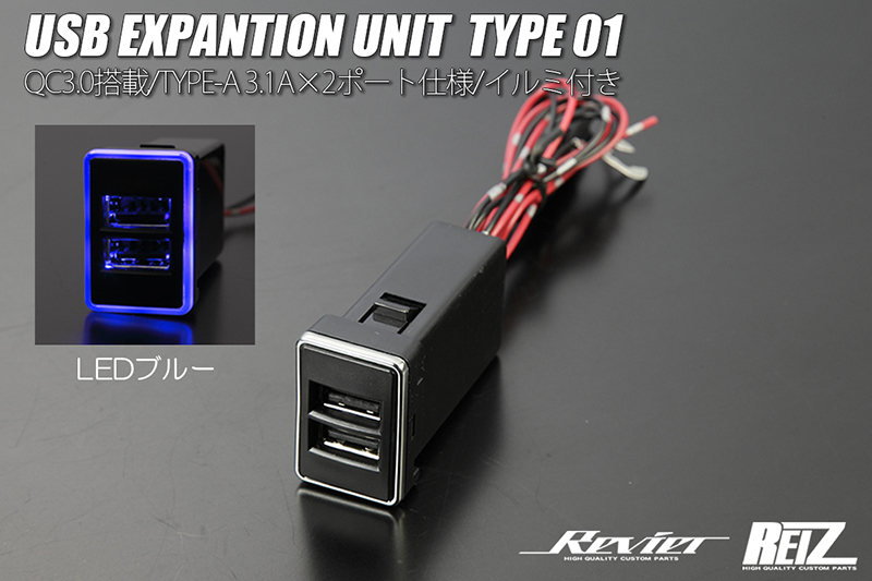 > ブルーLED 増設 USBポート タイプ01 QC3.0対応 3.1A×2ポート TYPE-A トヨタ車用 // 140系 カローラ アクシオ フィールダー