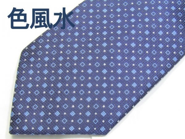 - 【開運風水】UA 327 色風水 ネクタイ 青色系 スクエアパターン 風水 ジャガード