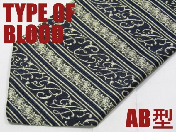 - 【血液型 AB型】AA 068 血液型ネクタイ AB型 TYPE OF BLOOD ネクタイ 日本製 紺系 ボーダー柄 ジャガード