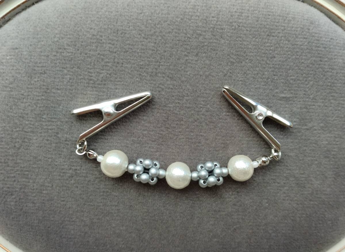 - ストールクリップ コットンパール&ビーズボールのショール留め