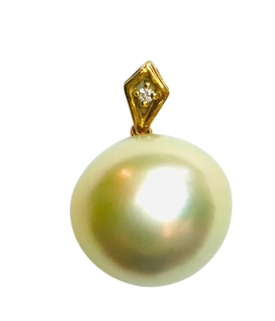 - qoj.Z5O04 K18 ゴールド 白蝶真珠 天然ダイヤモンド 12.5mm玉 1PD0.01ct ペンダントトップ ソーティング付