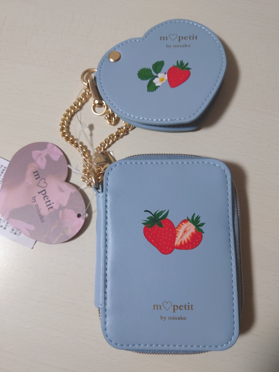 - m petit いちごチャームポーチ&ミラー 小物入れ カードケース 新品タグ付き