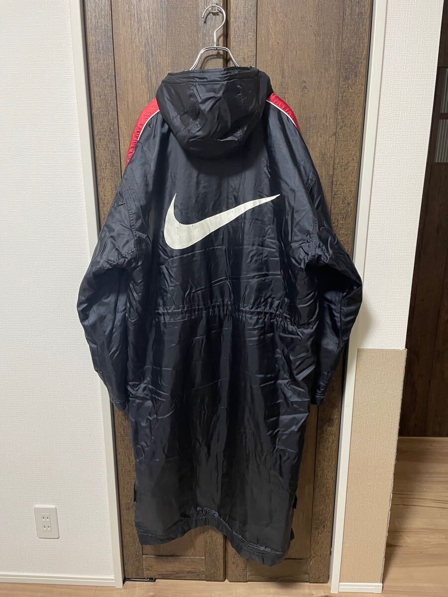 - 90s 即決 NIKE ナイキ ベンチコート 黒 赤 Lサイズ ロングコート ビッグスウォッシュ ボアコート ボア