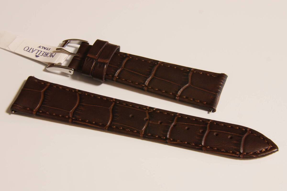 - 《送料サービス》ラグ幅 21mm カーフ(アリゲーター型押) モレラート ボーレ ダークブラウン クリッカー仕様
