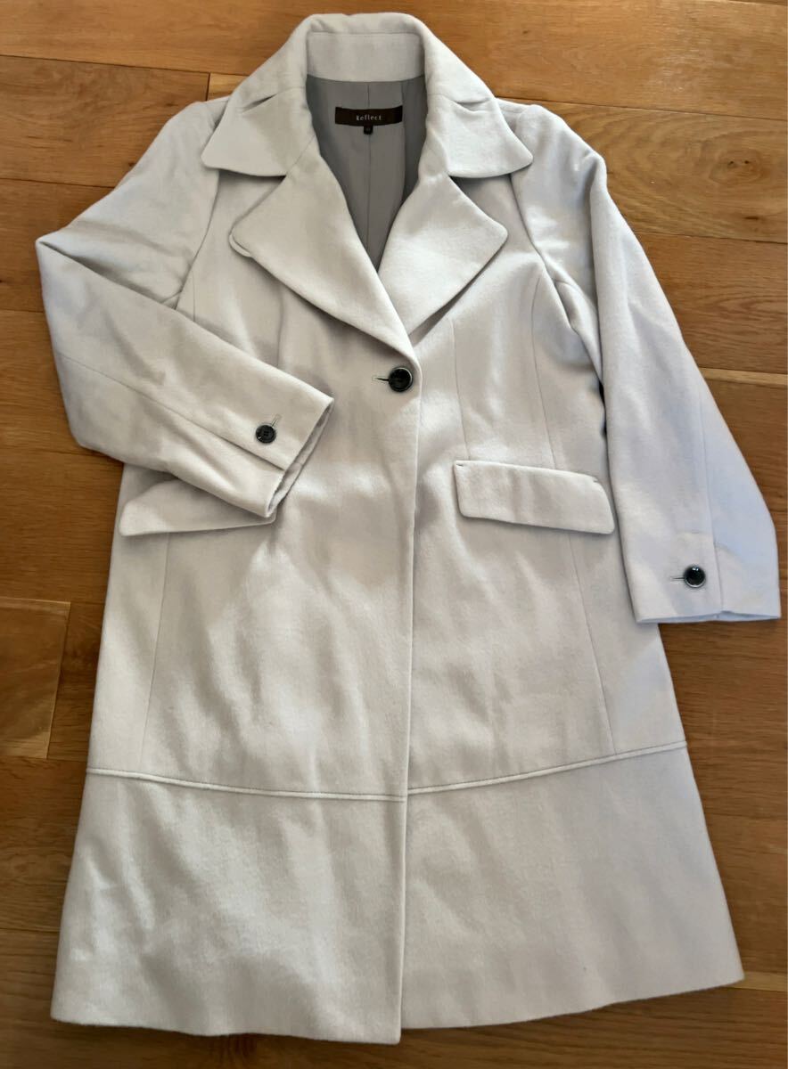 > 美品 リフレクト Reflect ★ 上質生地 定番 2way テーラード コート 13号 アイスグレー ロングコート チェスターコート 大きい