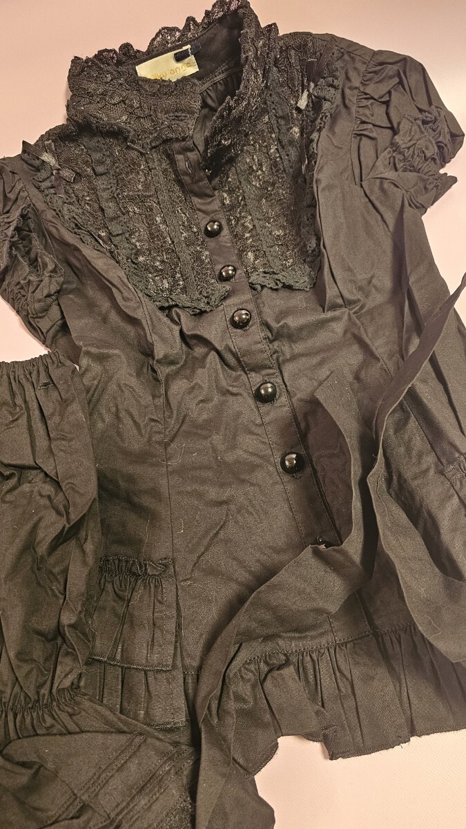 - メイド服のmilky ange おでかけ着 ルイーズ ブラック Sサイズ半袖ブラウス、付け袖(7分丈/長袖) ゴスロリ 中古