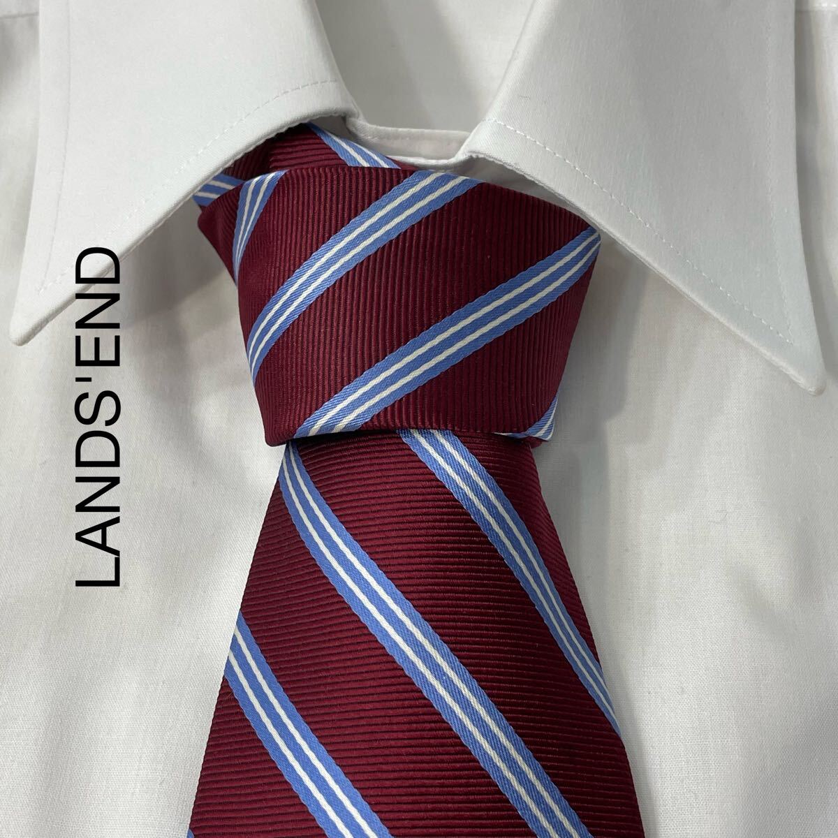- LANDS'END ランズエンド レジメンタル ストライプ シルク ネクタイ ワイン ライトブルー ホワイト TG893